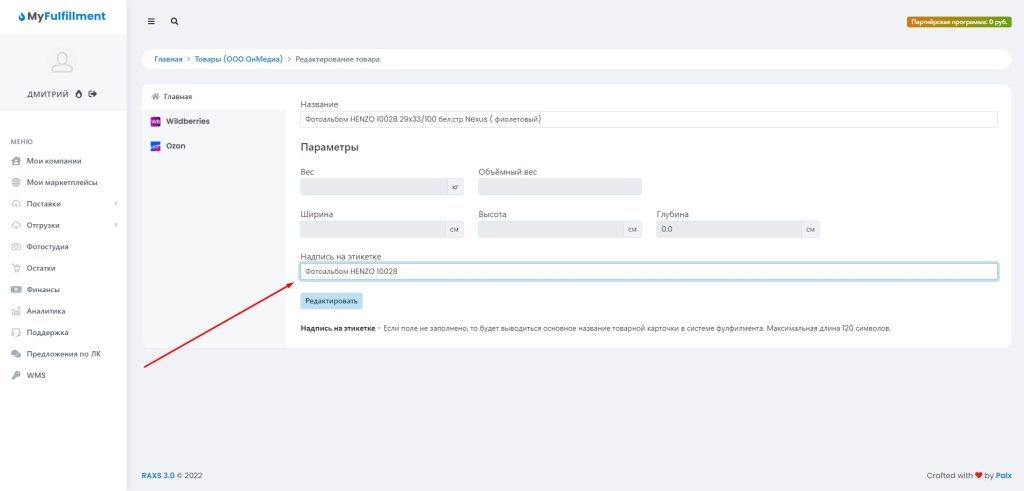 Для этого перейдите в карточку товара и в поле «Надпись на этикетке» введите требуемое название.