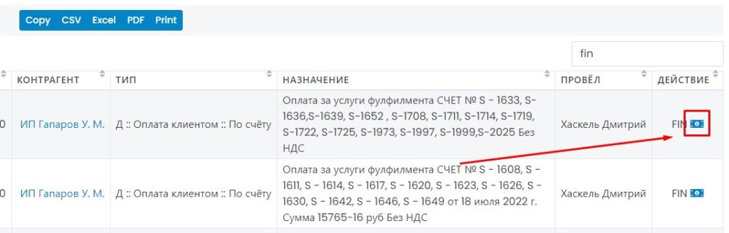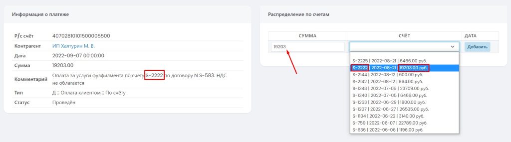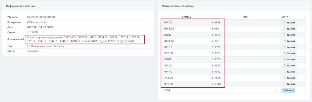 Если в поле Комментарии указано несколько счетов, то поочереди выбираете каждый счёт