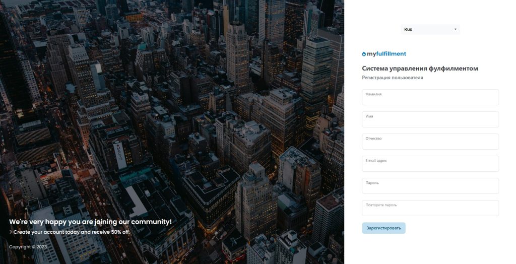 Далее вы автоматически войдёте в систему и будете перенаправлены на страницу Регистрация фулфилмента.