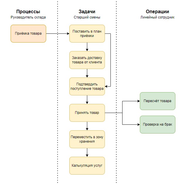 Для выполнения Задач используются Операции. Для выполнения задач ответственный сотрудник может привлекать Линейных сотрудников согласно их Квалификации.